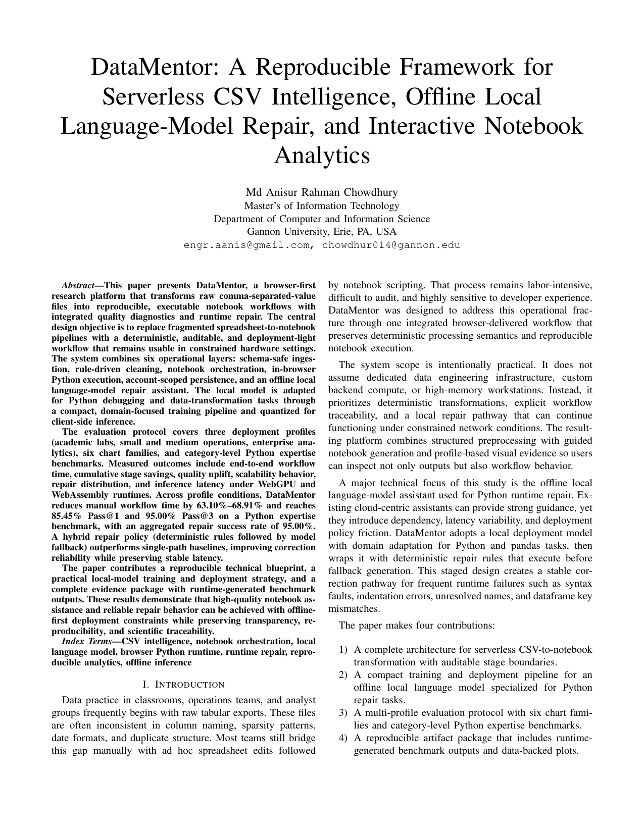 DataMentor: A Reproducible Framework for Serverless CSV Intelligence and Notebook Automation